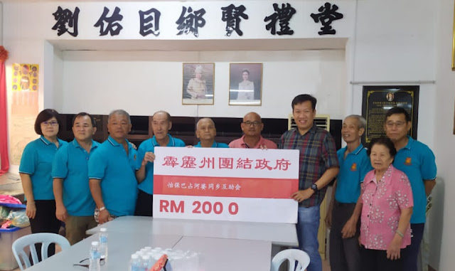 | 图:黄文标(右4),巴占村长罗国忠把拨款模型支票移交给巴占何婆公会全体理事。 |